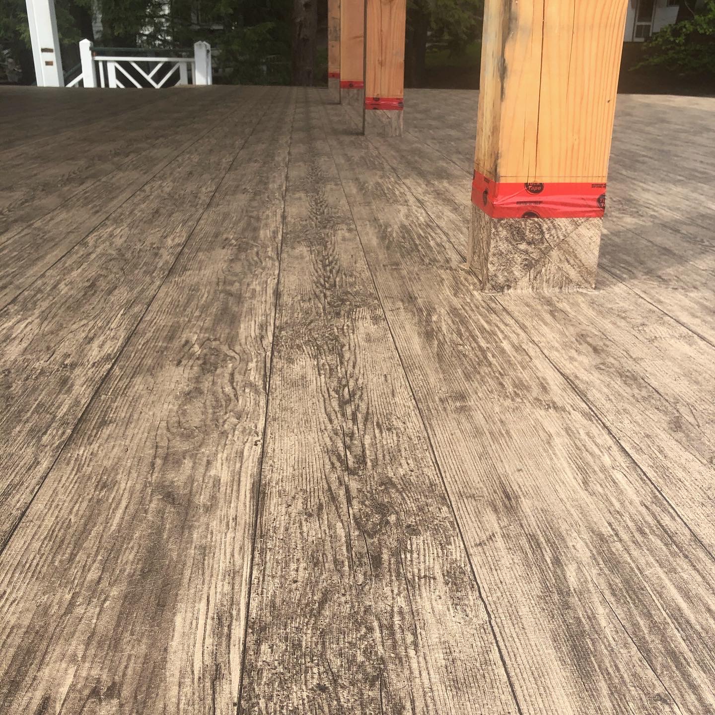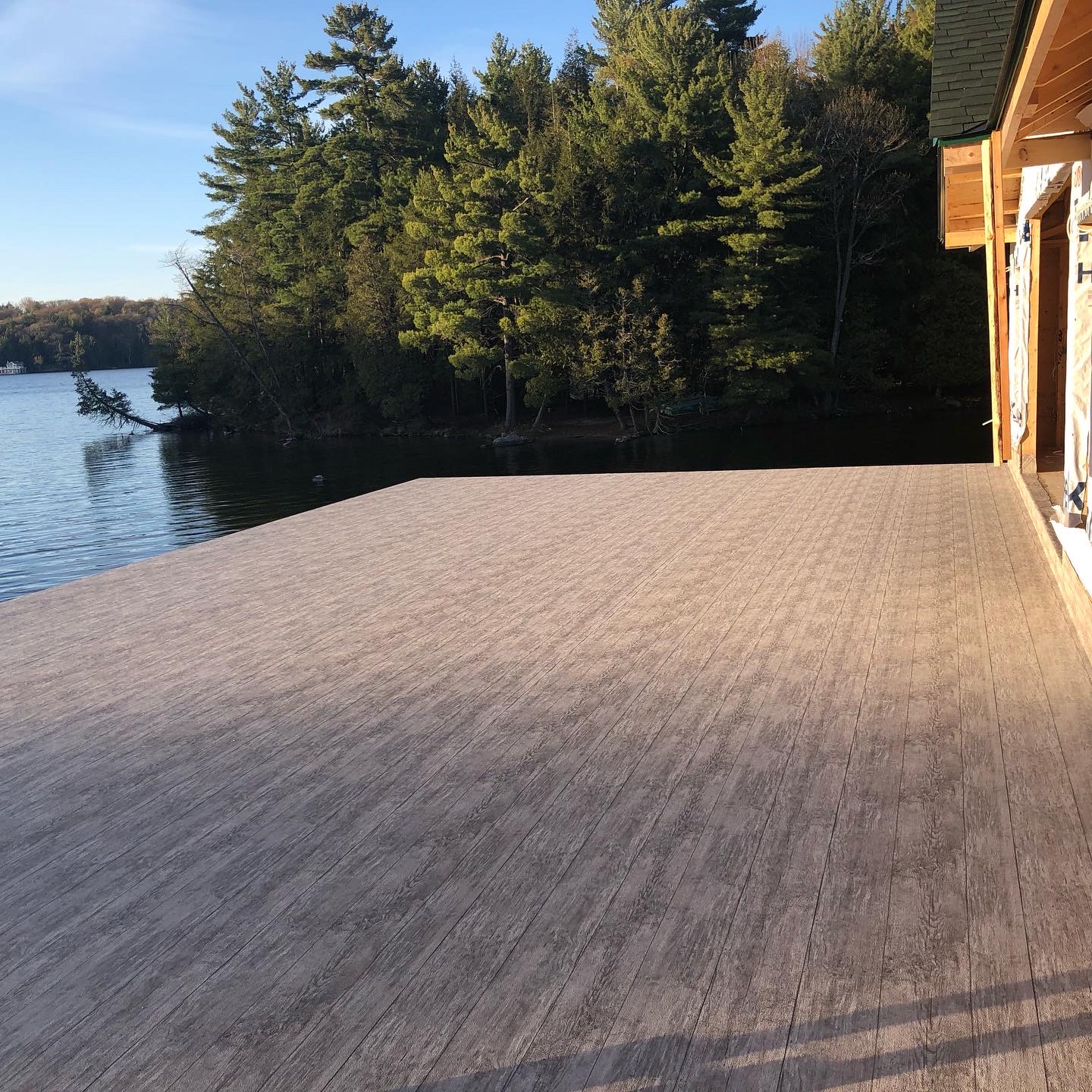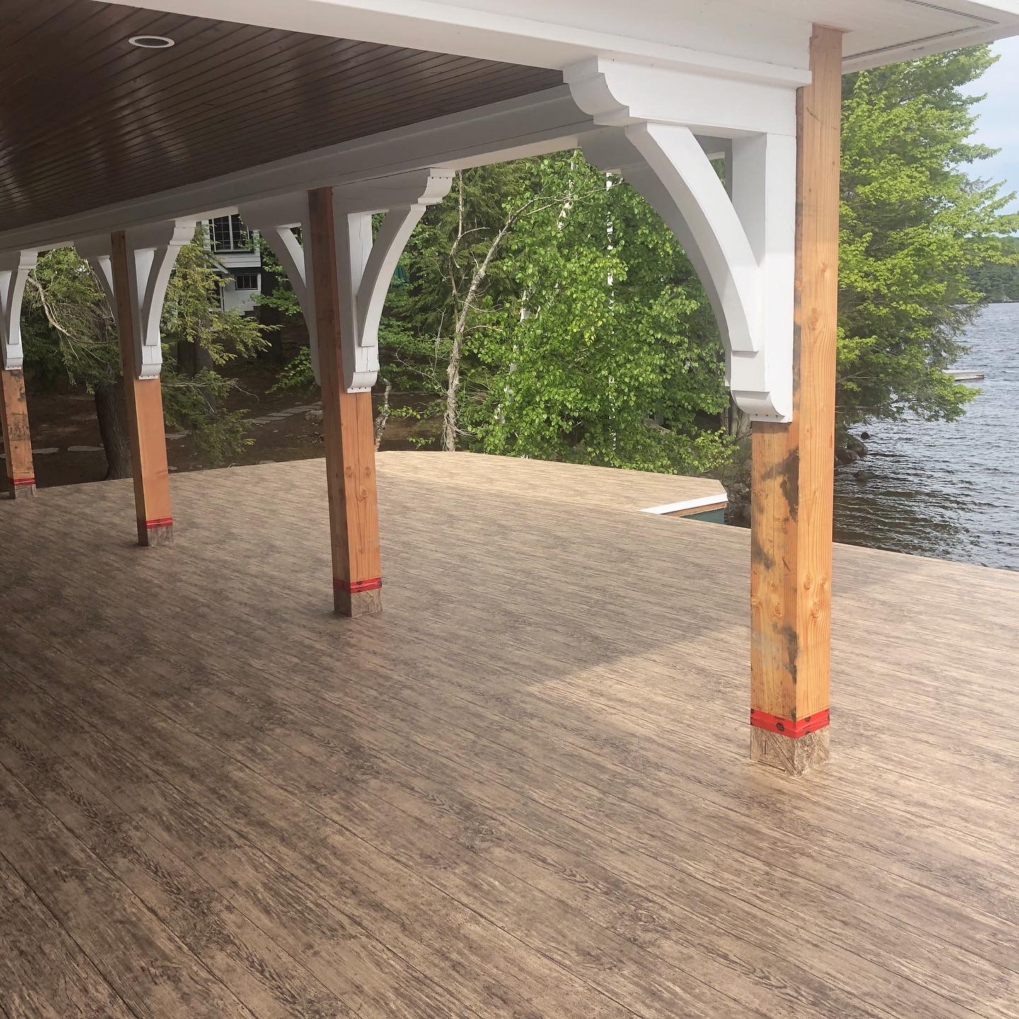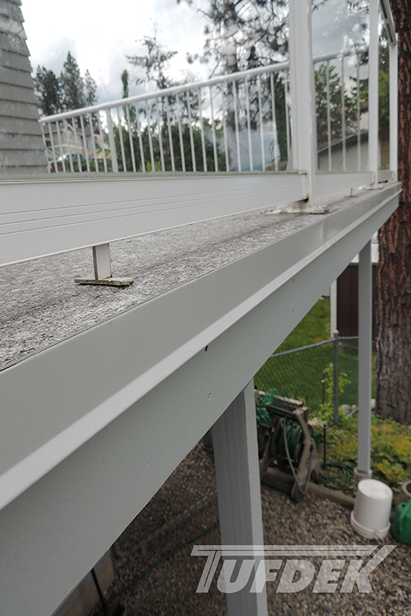 We are the licensed dealer for Tufdek in the Muskoka area. Tufdek is the strongest vinyl decking membrane in the world! The thin membrane is laid overtop of an already plywooded deck, glued down then welded at the seams. This creates an impenetrable waterproof barrier that stands the test of time. With an industry leading 20 year warranty, Tufdek is the best choice for those looking for low maintenance, long lasting waterproof decking. It comes in a very wide variety of colours, with patented printing technology that gives the vinyl a realistic look. Our most popular patterns are the plank style patterns that are made to look like real wood. With realistic knots and tree rings, you could almost be fooled that you’re not looking at real wood!